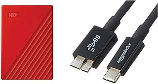 【セット買い】WD ポータブルHDD 4TB USB3.0 レッド 暗号化 パスワード保護 3年 My Passport 2019モデル WDBPKJ0040BRD-WESN & Amazonベーシック USBケーブル 0.9m (タイプC - マイクロ3.1タイプB) ブラック