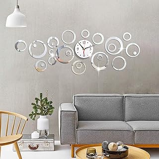 NANAOUS 3D アクリルミラーウォールステッカークロック 30 X 84 cm / 33 X 11.8インチ バブルサークルミュート クリエイティブ スタイリッシュ 面白い装飾壁時計 母の日 クリエイティブ デコレーション ギフト