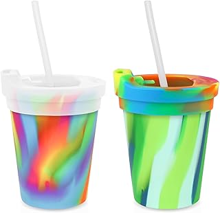(2-Pack, Tie Dye) - Silipint Silicone Kids Cups Sea Swirl & Hippie Hops, U.S. Patented, BPA-Free, Unbreakable, Sealable Lid, Silistraws Included - Safe For Car Rides, Camping, Sports, Life (2 Cups/Lids and Straws)