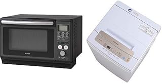 【セット買い】アイリスオーヤマ 過熱水蒸気 スチームオーブンレンジ スチームカップ付き 24L ブラック MO-FS2403 & アイリスオーヤマ 全自動洗濯機 一人暮らし 5kg 簡易乾燥機能付き IAW-T502EN セット