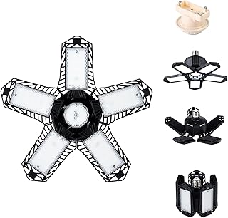 LED ガレージライト 60W 5灯式 E26 シーリングライト 昼光色 6500K 折りたたみ式 天井照明 角度調節可能 省エネ 高輝度 車庫 倉庫 屋内用
