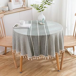 Monibana ラウンドテーブルクロス コットンリネン テーブルクロス ストライプタッセル 重量感のあるテーブルカバー キッチン ダイニング ピクニック レストラン パーティー テーブルトップ装飾 グレー 60インチ