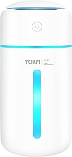 【2021改良版】TOKFI 加湿器 充電式 卓上加湿器 車載加湿器 超音波式 小型 350ML 次亜塩素酸水対応 長時間持続 静音 7色LEDライト ミニ加湿器 空焚き防止 水漏れ防止 花粉症対策 肌乾燥対策 (ホワイト)