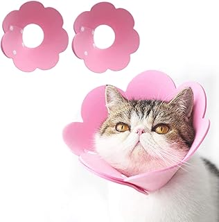 Liroyal エリザベスカラー 猫 小型犬 可愛い 軽量 手術後ケア 傷口なめ防止 調節可能 噛み防止 爪切り 去勢 避妊 四季適用 (2枚粉色)