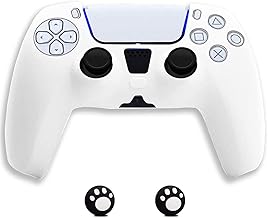 Liroyal PS5用 コントローラー ケース カバー アナログスティックカバー シリコン素材 簡単装着 ほこり防止 滑り止め 耐衝撃 アシストキャップ2個付き ソフト (白)