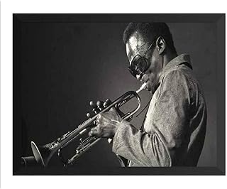 ハンギングペインティング - MILES DAVIS マイルスデイヴィス - Portraitのポスター 黒フォトフレーム、ファッション絵画、壁飾り、家族壁画装飾 サイズ:33x45cm(額縁を送る)