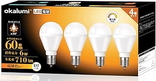 okalumi LED電球 E17口金 調光器対応 60W/75W形相当 電球色 2700k 710lm ミニクリプトン ミニランプ形電球 断熱材施工器具対応 広配光 小型電球タイプ 【60形 調光器対応 4個セット】