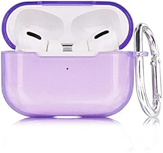 AirPods Pro 対応 ケース カバー アクセサリ 分離式 上下分離タイプ 耐衝撃性 防水 落下防止 ワイヤレス充電 TPU素材 カラビナ付き ソフト クリア 透明 シンプル パープル