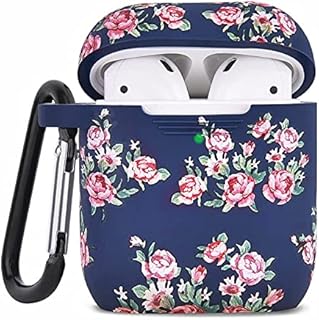 AirPods 1/2 対応 ケース カバー アクセサリ 一体型 耐衝撃性 防水 落下防止 ワイヤレス充電 シリコン素材 ソフト 柄 プリント 可愛い おしゃれ 花柄 花 フラワー ネイビー C