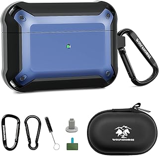 【最新の改良】 Airpods pro ケース AirPodsProシェル リング付き 耐衝撃性 落下防止 防塵 防水TPUハードシェル 耐久性 Airpodsの特別な保護スリーブアクセサリー WOLF HORSE (Airpods Pro 青)