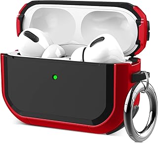 CM Tech AirPods Pro ケース キズ防止 耐衝撃 落下防止 紛失防止 エアーポッズ プロ 全面保護カバー ワイヤレス充電対応 カラビナ付き LED可視 落下防止 TPU おしゃれ AirPods Pro カバー (レッド)
